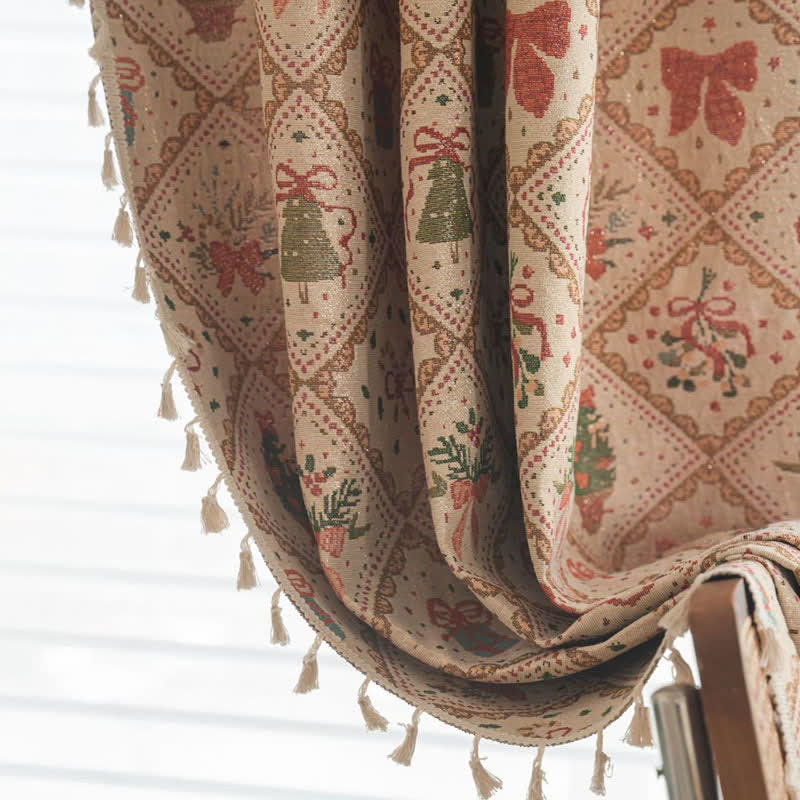Brighthowl Christmas Tree & Bow Print Holiday Curtain