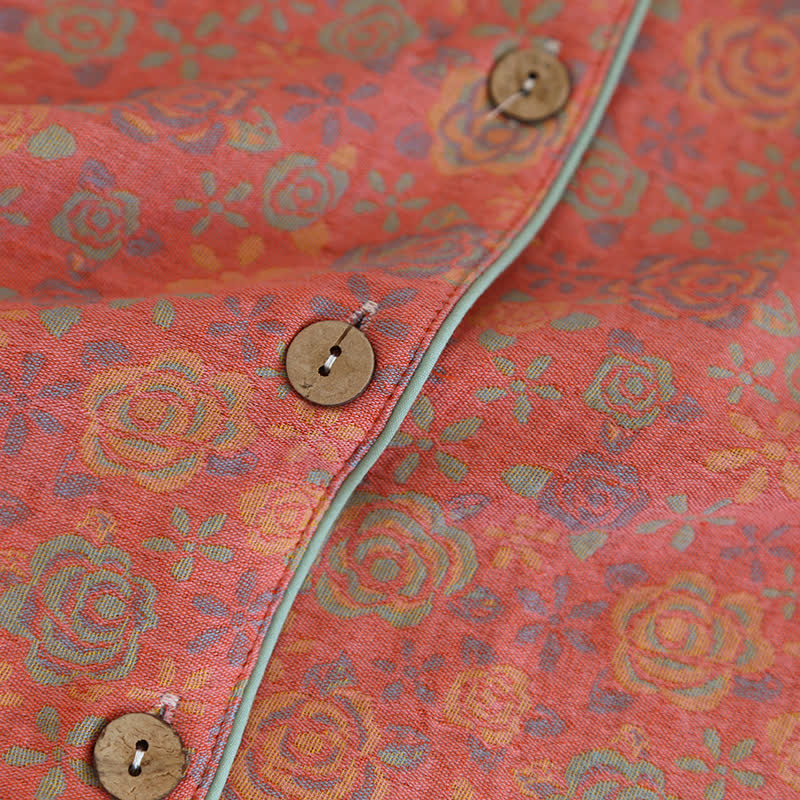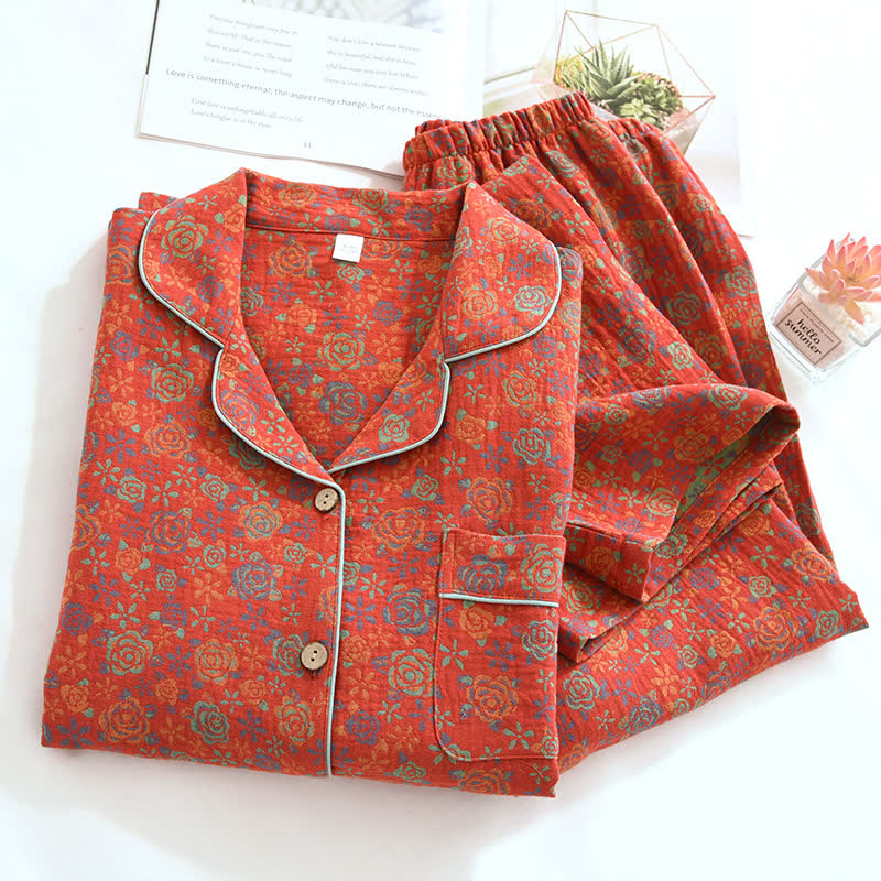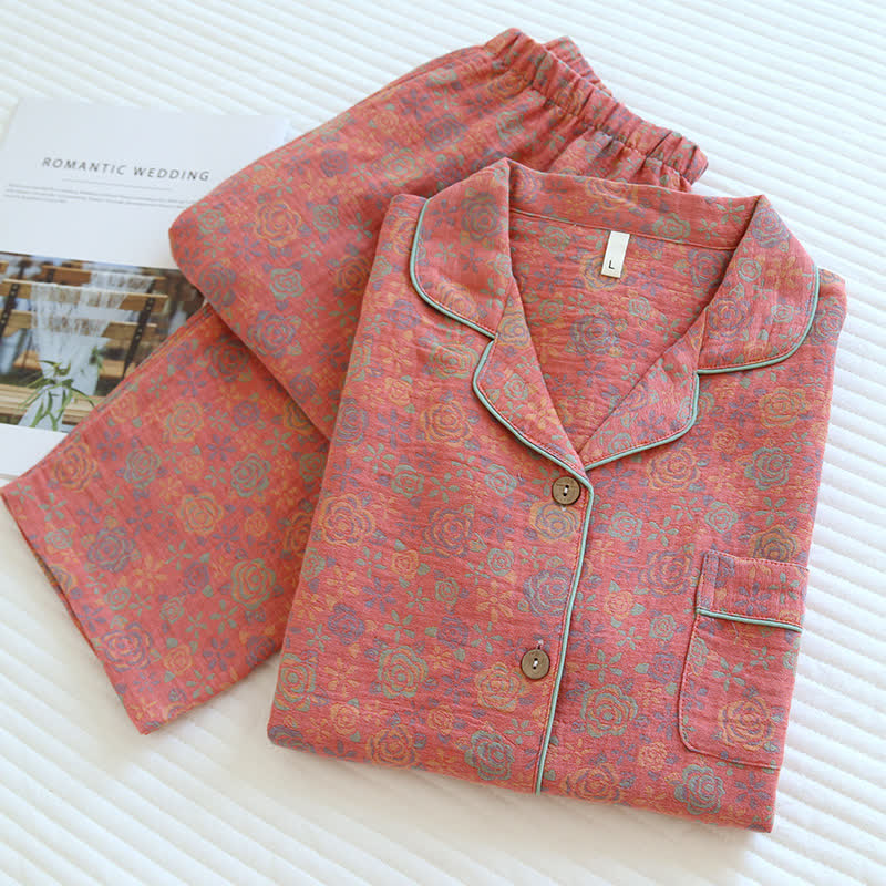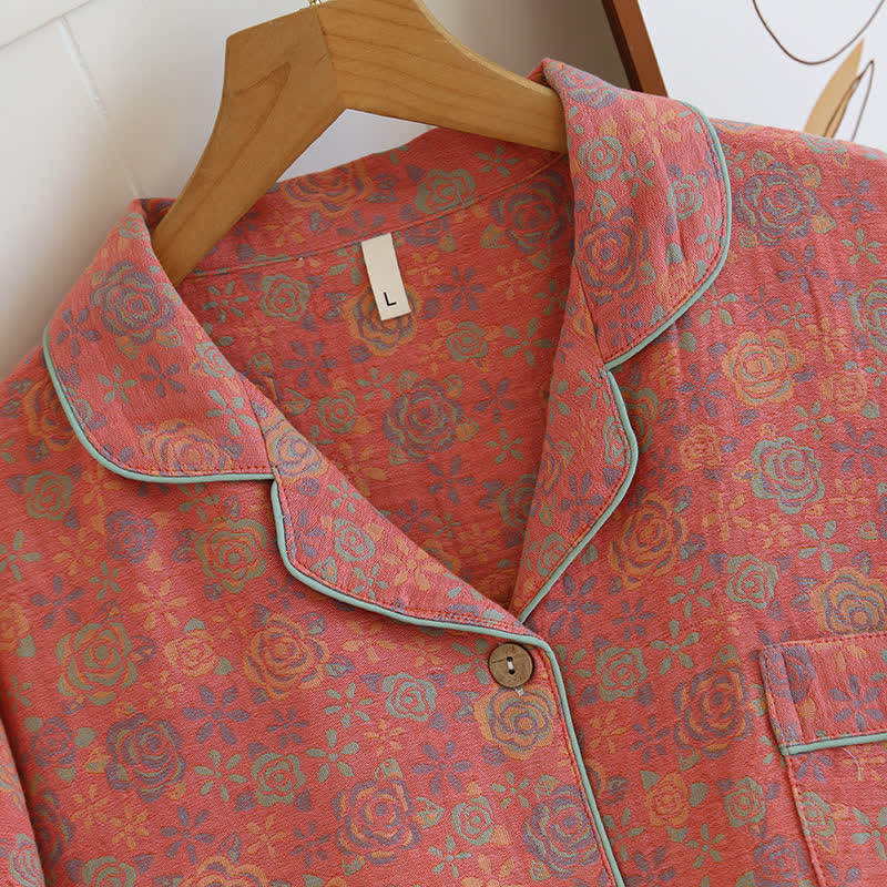 Brighthowl Rose Flower Cotton Lapel Nightwear Set