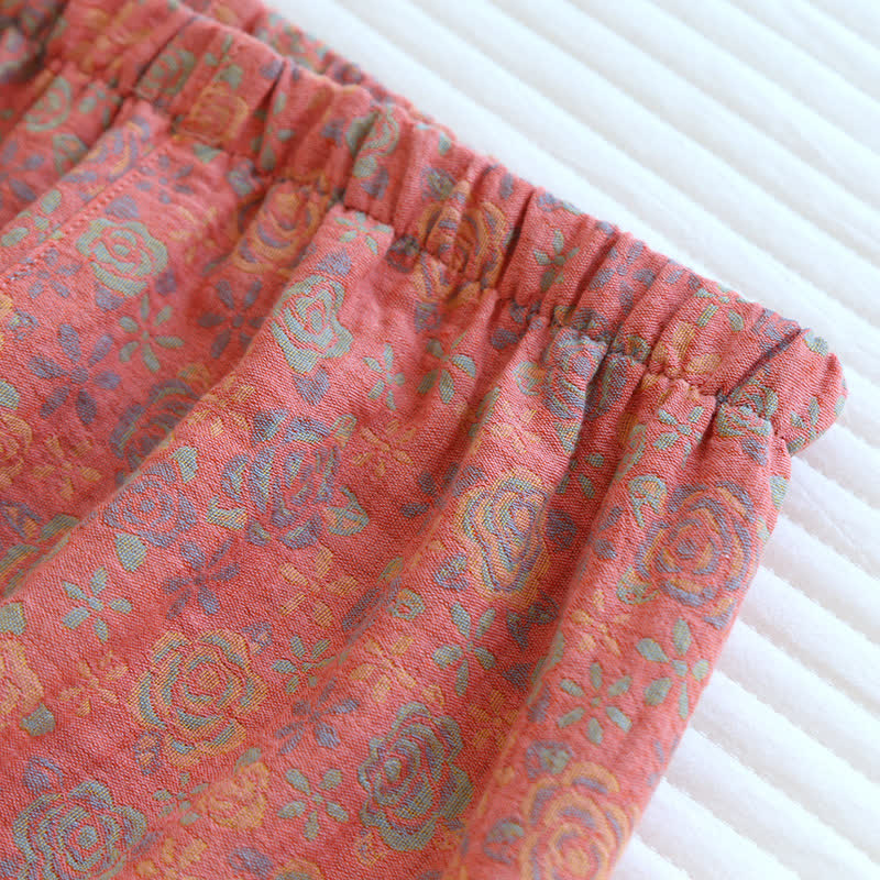 This loungewear with rose patterns is the epitome of elegance and luxury. Made of pure cotton, it is super soft, breathable, and more comfortable than ordinary material providing you with an optimal cozy wear experience. The elastic belt of the trousers can adjust the trouser's size according to your body shape. The pastoral flower loungewear set adds a touch of enchance for you. Let yourself feel extremely comfy in the moment of lounging and sleeping. It's suitable for Autumn, Winter, and Spring and is a very good indoor wear choice.ย